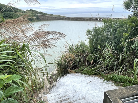 連日大雨為水庫帶來大進水,北竿坂里水庫直逼19公尺滿水位。(圖/文:陳鵬雄)