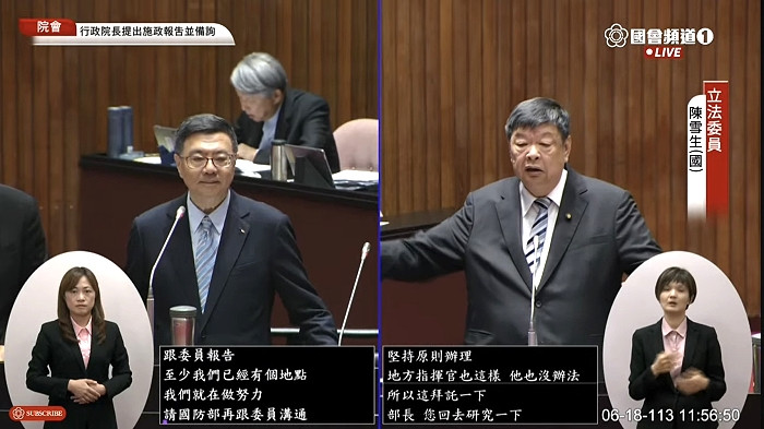 立委陳雪生18日上午質詢行政院長卓榮泰。(圖:國會頻道)
