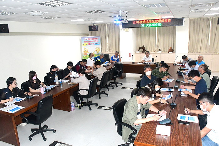 今年環境衛生第一次協調會議昨天在環資局會議室召開,由張龍德主持;先就此次會議提案進行討論,研議解決方式再由主持人進行決議。討論提案包括加強宣導工程廢棄物清理計畫書申報與監督廢棄物流向;有關海污應變資材管理單位應落實管理1案;協請各鄉公所代為管理海污應變資材1案;有關入村道路或步道等樹木修剪案,建請相關權責機關單位處理案;鄉公所協助社協淨灘垃圾清運1案;請環資局協助補助資本門環保機具(割草機、吹葉機、推土機等)分配鄉公所;為解決高齡清潔人員續聘問題並保護清潔人員安全,擬規劃依健康檢查結果及體適能檢測作為高齡清潔人員續聘依據;為落實職業安全衛生法之規定及維護清潔人員健康,擬訂清潔人員定期健康檢查計畫;除樹木修剪案裁示另由產發處召集相關將清理區域逐項列出及討論分工之外,其他提案均獲通過。