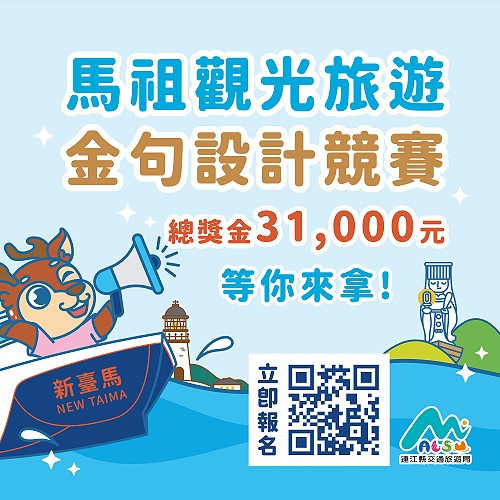 為了推廣馬祖觀光旅遊,交旅局以「馬祖觀光旅遊」為主題,徵集精簡有力、郎朗上口的宣傳金句,作為宣傳馬祖觀光。交旅局表示,希望透過這次競賽,激發大家對馬祖的熱愛與創意,共同推動馬祖的觀光發展。歡迎大家踴躍參賽,為馬祖創造出最具魅力的旅遊金句!