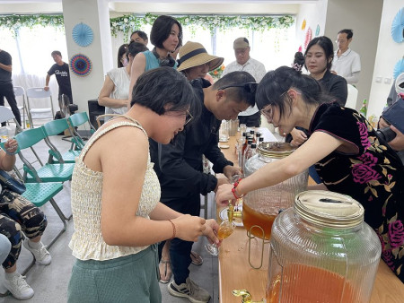 活動第一階段由專業調酒師余芮希老師帶領大家品鑑老酒,從酒體顏色、色澤,到香氣與口感,讓參與者體會到老酒的多層次風味。第二階段,由鄉長夫人王雲萍帶著大家回憶過去酒廠出售老酒時,用塑膠繩綁起12瓶老酒的情景,現場鄉親紛紛躍躍欲試,重溫過往的同時也倡導環保,不使用塑膠袋。