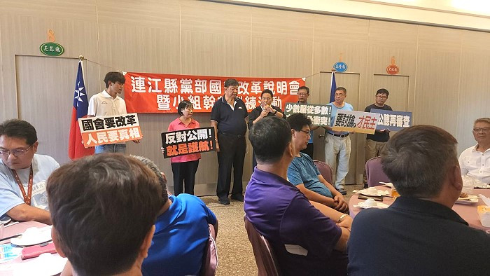 當晚說明會由立委陳雪生主持,參加黨籍公職民代包括連江縣長王忠銘、副縣長陳冠人、國民黨連江縣議會黨團書記長議員陳貽斌、議員陳書建、曹爾章、南竿鄉長林志東、北竿鄉長吳金平、莒光鄉長陳樂禮等人出席,力挺國會改革,捍衛民主。