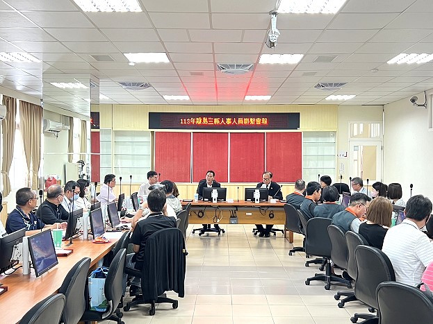 離島三縣人事主管聯繫會報於昨天下午3時30分,在縣府3樓會議室舉行,來自人事行政總處、澎湖縣政府、金門縣政府,以及連江縣政府共25人與會討論,會議由行政院人事行政總處人事長蘇俊榮主持。