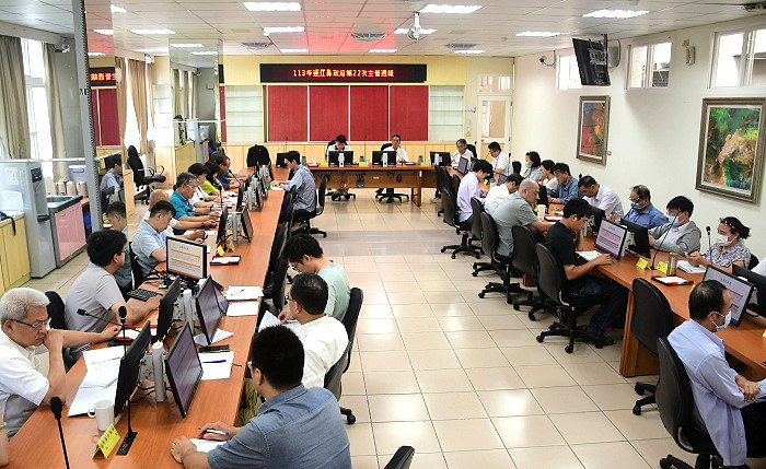 縣府第22次主管週報,王忠銘提醒受颱風影響,海運可能一週無法行駛,請交旅局注意空中交通及適時調度加班,補上海運的空缺。(圖/文:曹重偉)