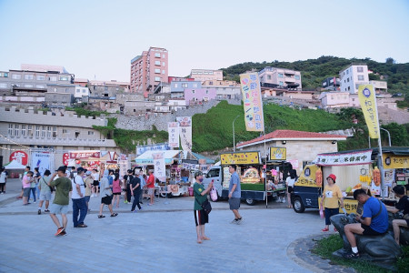 美食市集販售品項有紅糟炸物、手搖飲品、煙燻雞腳鴨翅、涼拌小菜、金銀花茶啤酒、鹹穌雞、雪花冰、韭菜盒、義大利麵、米血糕、炭烤雞排,以及來自台灣本島的大甲40年知名串燒天王、捲天下蔬食披薩、和也烤玉米、那個彩色地瓜球、馬來西亞煎餅等各式地方小吃與料理。
