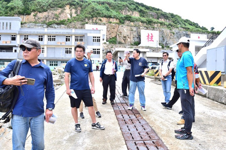 【本報訊】工務處15日辦理中柱碼頭營運設施改善會勘,邀集議長張永江及港務處、東引鄉公所、鄉代會等單位針對碼頭鋪面、軍用船渠擋牆修建及旅客上下船碼頭階梯安全改善項目,共同進行實地勘察與討論。