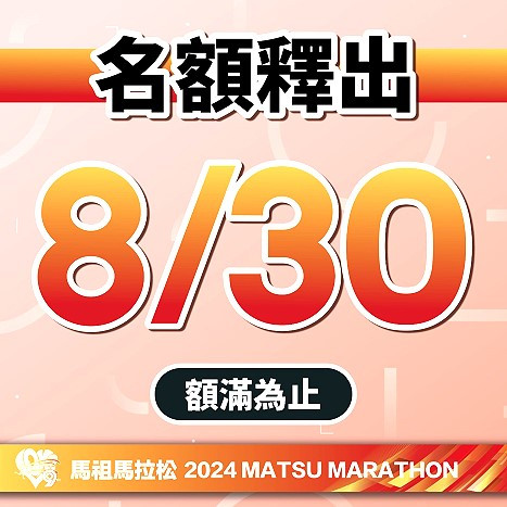 【記者曹重偉報導】第九屆馬祖馬拉松的報名已於8月23日截止且已額滿,然主辦單位收到不少跑友私訊,詢問是否可以加開報名。為了回應這些熱情的跑友需求,主辦單位經過內部討論,決定釋出少量名額。此次釋出名額報名時間將從即日起至8月30日23時59分截止,名額有限,先搶先贏!報名網址:https://www.mat-sumarathon.com。