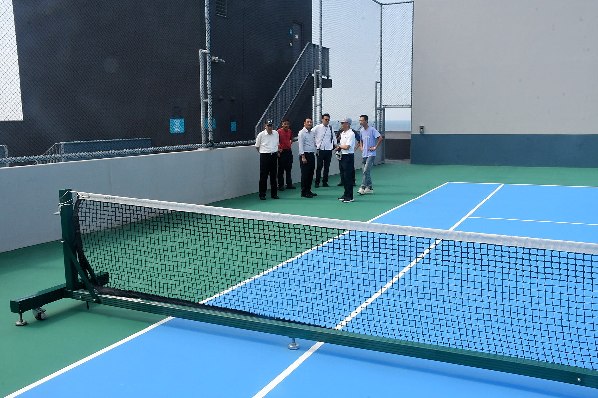 王忠銘一行人之後逐層視察館內的多個運動場地,包括一樓的桌球場,二樓的籃球場、角力場、體適能中心,3樓的羽球場、韻律教室、飛輪教室,4樓的宿舍、機房,以及頂樓的網球場、機房、屋頂平台;王禮民指出,館內設施完善,將成為縣內各體育賽事的重要場地。尤其是館內的籃球場及羽球場,設施符合國際標準,將為運動愛好者提供一流的運動體驗,同時也對寬敞空間、舒適環境及嶄新設備,表示高度肯定與期待。