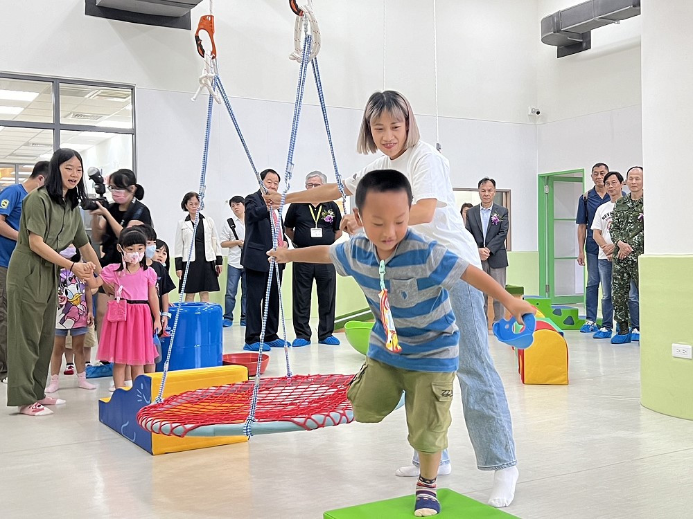 唐氏症基金會執行長兼主任林美智帶領參觀公托中心,不僅協助青年世代減輕家庭照顧負擔,更提供幼兒豐富多元活動,讓馬祖孩子健康成長。場館也設有早療教室,幼兒可藉由遊戲活動中進行五感檢測探索,可從中發現有無發展遲緩障礙,早期發現早期治療。