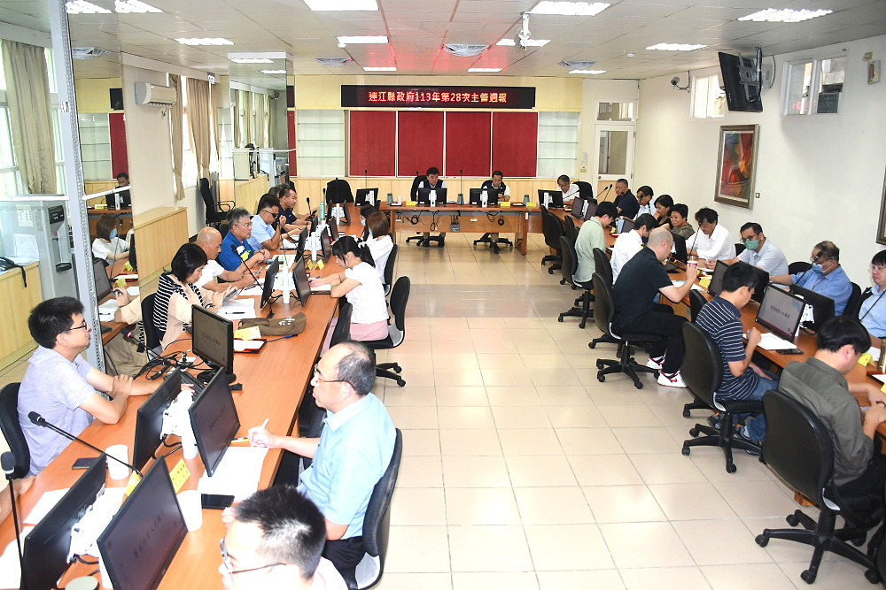今年第28次主管週報昨天上午在縣府會議室召開,由王忠銘主持,副縣長陳冠人、秘書長張龍德、參議及府內局處主管列席;各局處說明上週交辦業務及待協調事項報告。