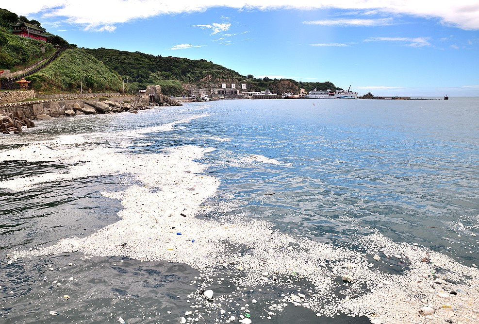 天文大潮+長浪 東引沿岸出現大量保麗龍
