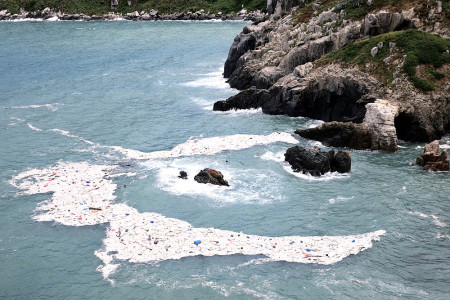 適逢天文大潮,原來卡在澳口高潮線以上的保麗龍等垃圾,遇到大滿潮又被帶到海上,並和在沿近岸漂浮流竄的保麗龍垃圾聚攏,隨著洋流在澳口或岸邊載浮載沈,景觀狼藉。