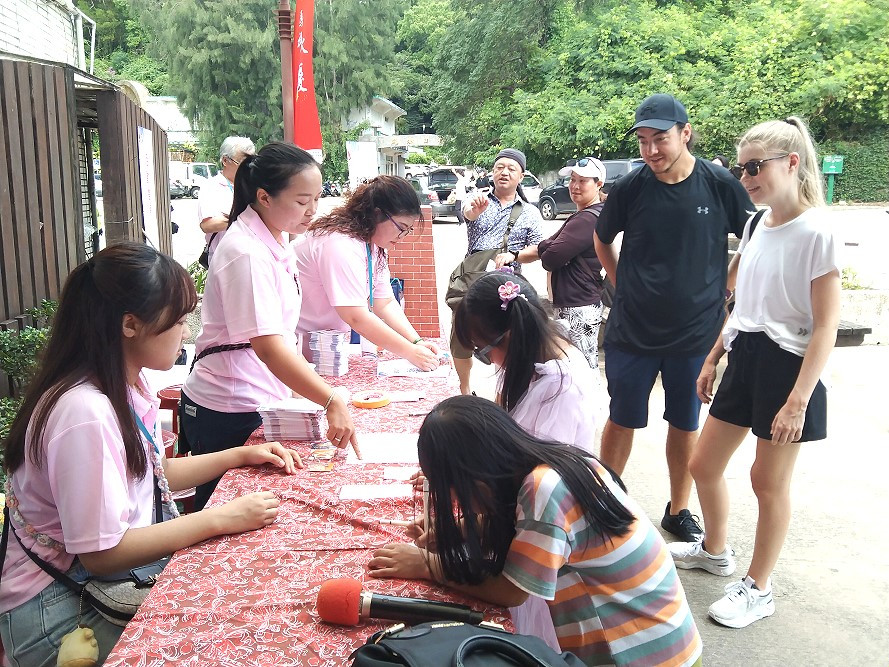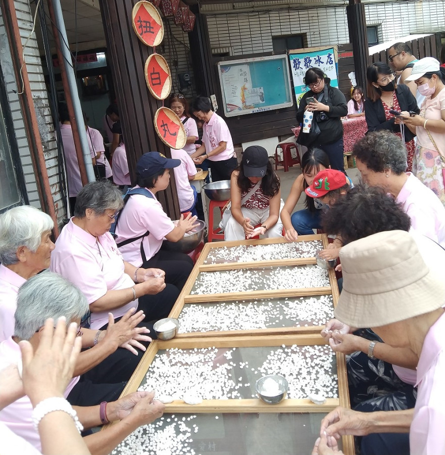 下午1時開始,民眾和遊客紛紛到達鐵板社區,除了親手寫下除穢卡來祈求順利平安,也體驗了當地傳統美食———扭白丸的製作,從用石臼磨米漿到捏製、揉成小湯圓狀,現場參與的民眾都覺得相當新奇有趣,體驗完扭白丸製作過程後,立刻就能享受到剛煮好的白丸甜湯,加上枸杞和白木耳及少許砂糖,就是一道暖心暖胃的在地特色美食,是絕對不能錯過的好滋味。