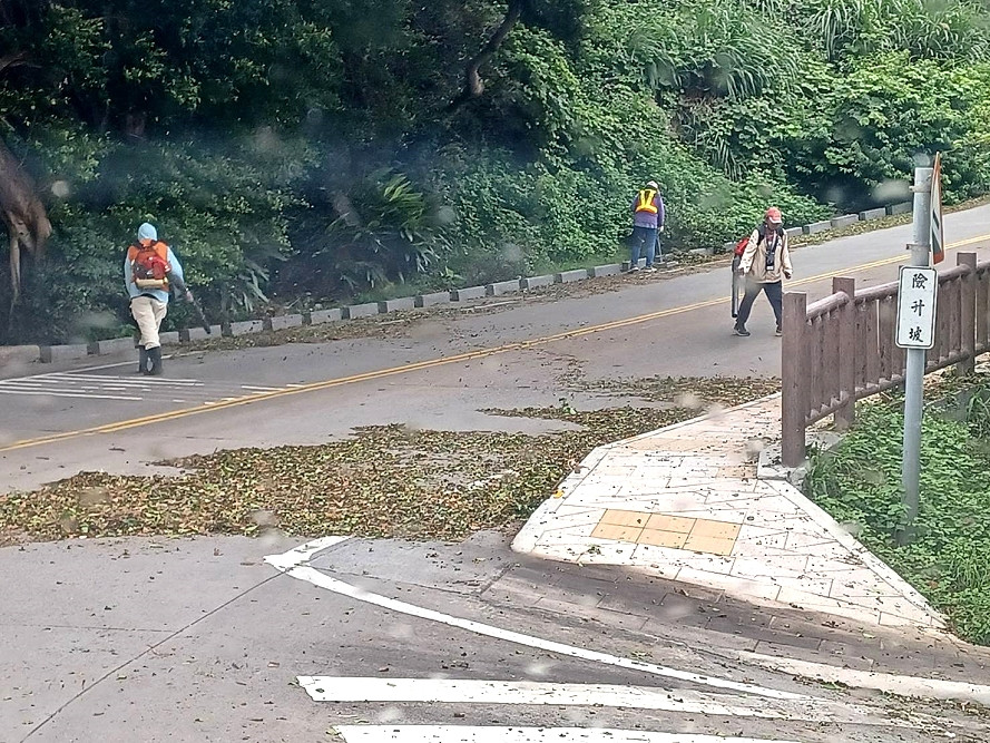 連江縣環資局表示,颱風雖未對馬祖造成嚴重災情,但落葉殘枝已影響道路交通,為加速環境復原,清潔同仁於週末加班工作,全力協助環境整潔,昨天已恢復南竿山、海六條支線道路交通。