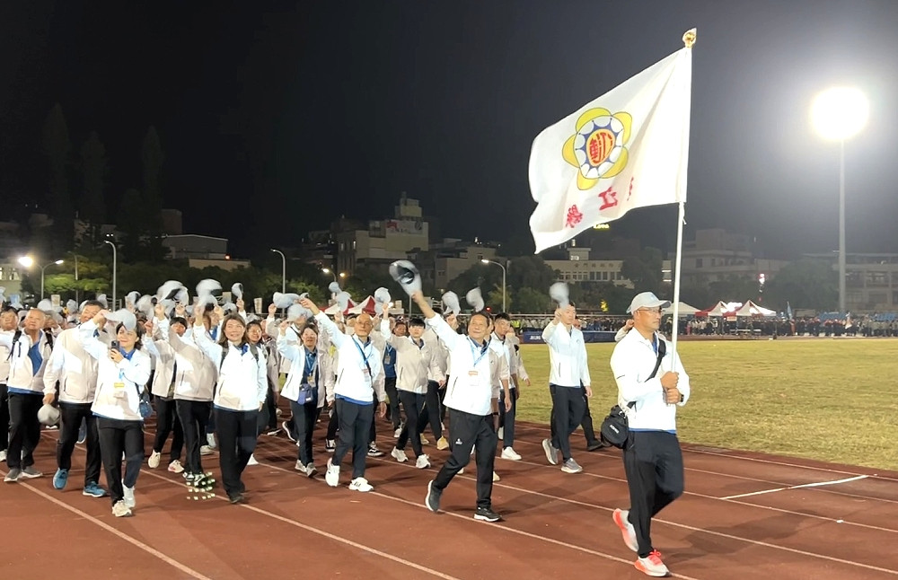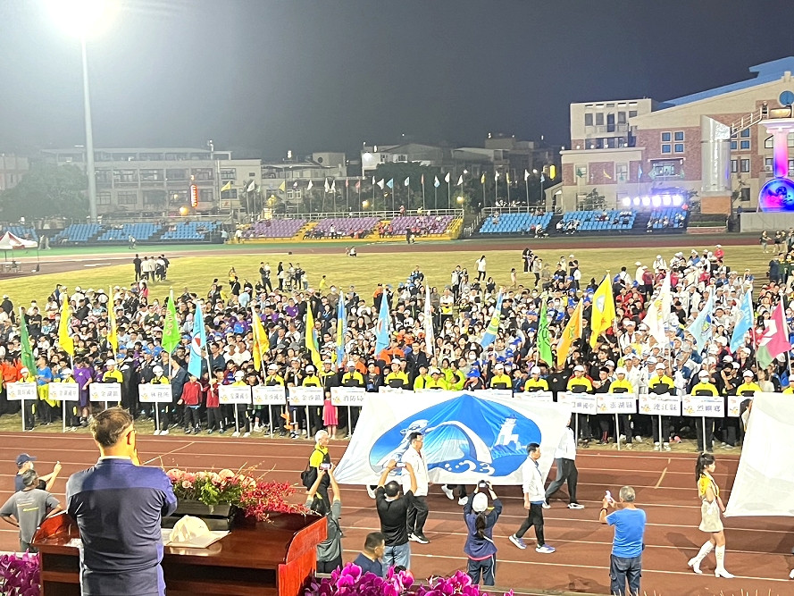 第10屆離島縣聯合運動會暨金門縣運動會17日晚間盛大開幕,縣長王忠銘帶領連江縣代表隊進場。(圖/文:馮紹夫)