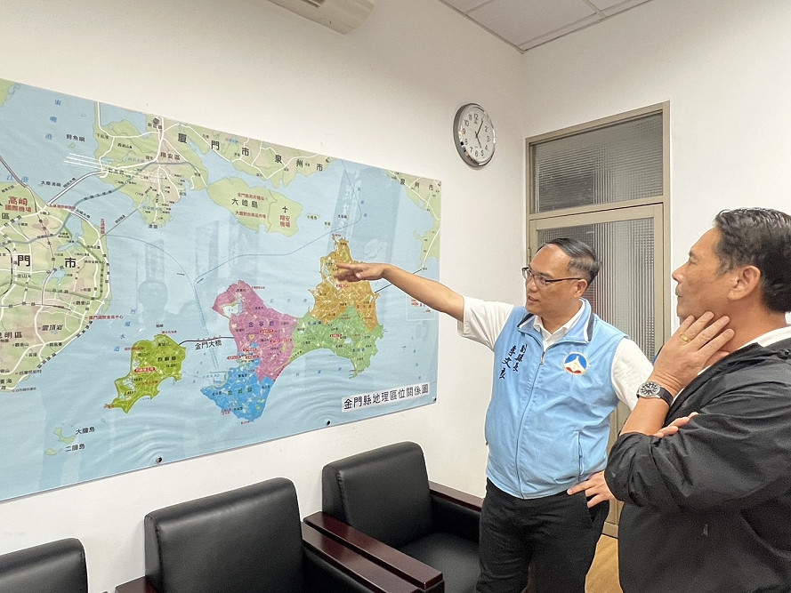 下午前往金門縣政府拜會,由副縣長李文良接待團隊,他介紹了目前金門縣政發展,以及小三通政策與金門通水工程。李文良說,縣長王忠銘在座談會上說的馬祖發展方向,要在政治與民生中取得平衡,讓同樣依賴小三通發展的金門感同身受。