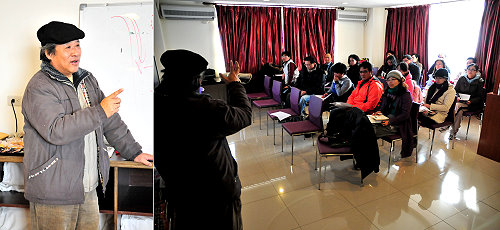 之後是基礎課程,包括攝影器材認識、相機種類、鏡頭、光圈、快門、曝光、採光、數位相機的認識及其他攝影配備解說,讓學員們對相機有基本認知及操作技能;還有構圖要領與技巧、特殊場景拍攝祕訣、晨昏攝影、黑卡基本技巧、星軌攝影、流動景物攝影等實務說明;講座後還有作品分享及問題討論,往後剎拍攝時如果遇有疑問,姜秀華歡迎大家隨時向他請教,多看、多拍、多嘗試、多學習他人長處,久而久之,大家都會成為獨樹一格的攝影家,不少學員經過「指點」後,對攝影產生濃厚興趣,讓姜秀華是相當開心。