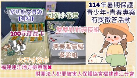 【本報訊】一年一度的青春專案反毒反詐騙宣導有獎徵答又來了!連江地檢署推出「青春專案」有獎徵答活動,讓馬祖鄉親暑假在家吹冷氣、吃冰棒的同時動動手指,就能增進法律常識還有機會拿好禮!即日起至8月24日23:59止,完成有獎徵答,就能參加抽獎,既輕鬆又實惠,這麼超值的活動怎能錯過?(題目連結:https://forms.gle/oWx447yJiT5XVUTy5)
