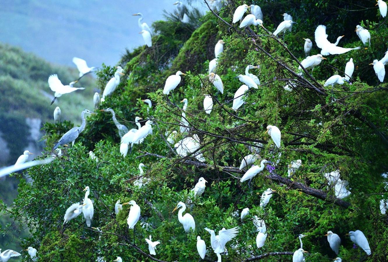 候鳥遷徙遇颱風,白鷺鷥群聚東引島東湧水庫暫歇。(圖/文:陳其敏)