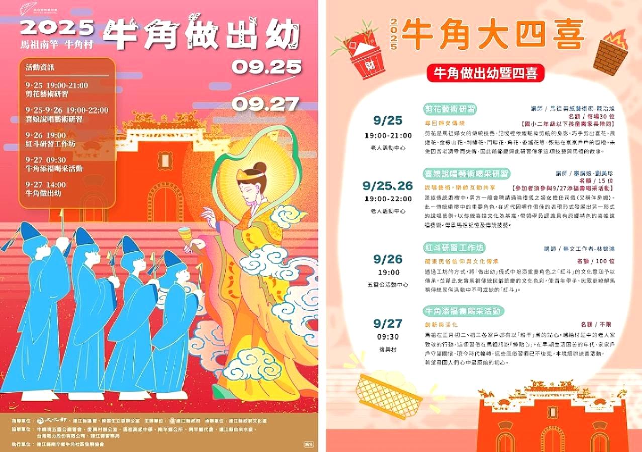 誠摯邀請鄉親及各地旅人踴躍參與,一同走進牛角聚落,見證青年轉大人的重要時刻,並親身體驗馬祖傳統文化與藝術交織的美好時光。