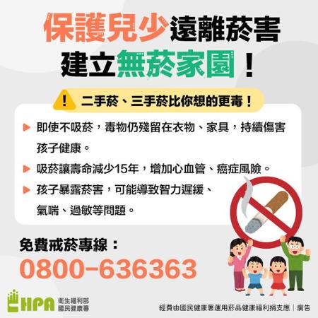 雖然政府於86年9月開始實施菸害防制法後,國人吸菸率已大幅下降,但依過去各國數據吸菸率下降20年,及戒菸20年後肺癌發生率及死亡率才會下降。需特別提醒二手菸暴露問題對肺癌所造成的影響也不容小覷,特別是家庭二手菸的暴露,根據國民健康署調查資料顯示,我國18歲以上女性家庭二手菸暴露率曾一度從97年的26.3%降至100年的17.3%,但其後又上升到109年27.4%,顯示仍有超過2成女性在家庭中遭受到二手菸的危害。長期暴露在二手菸下,不僅會造成如氣喘、支氣管炎和肺氣腫的胸腔問題和心臟病外,還會增加罹患肺癌的危險。