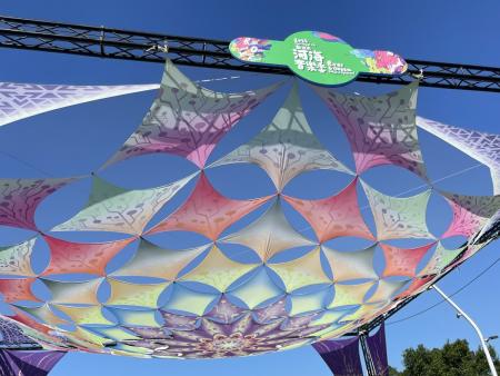 當然各場音樂盛會,都會讓樂迷們不遠千里迢迢前來共襄盛舉,熱鬧喜悅的氛圍,更是迷惑眾人;在三重舉辦的河海音樂季,在入口處,設置了大型的裝置藝術,為打造視覺的張力,以繽紛亮麗的幾何圖形,並且以螢光噴繪布幕,不管白天或是晚上,在燈光與陽光交互映照下,顯得格外晶亮美麗,順勢激發了所有參與民眾的熱情,也讓無比的浪漫情懷悄然升溫。