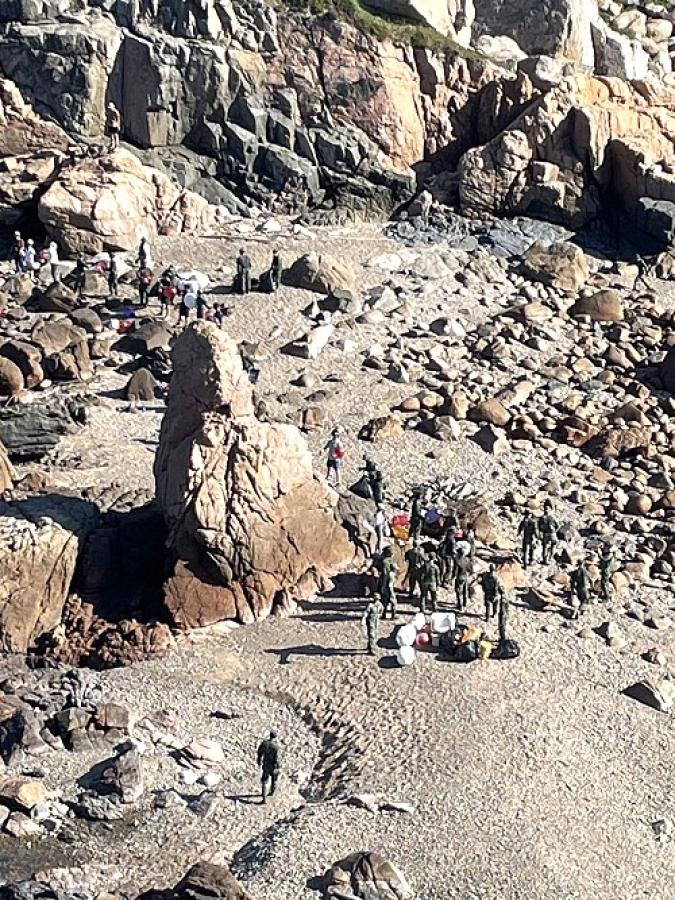 軍民與志工齊聚北竿,展開淨山淨海活動,守護馬祖海洋環境的決心。鄉親志工與官兵們在海上孔子像周邊協力清理漂流垃圾,恢復海岸原有風貌。(圖/文:鄭禮頤))