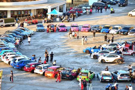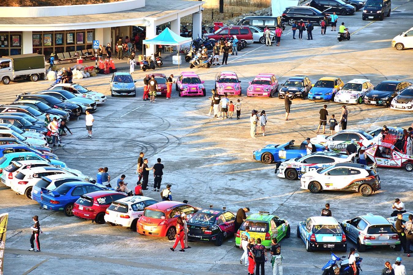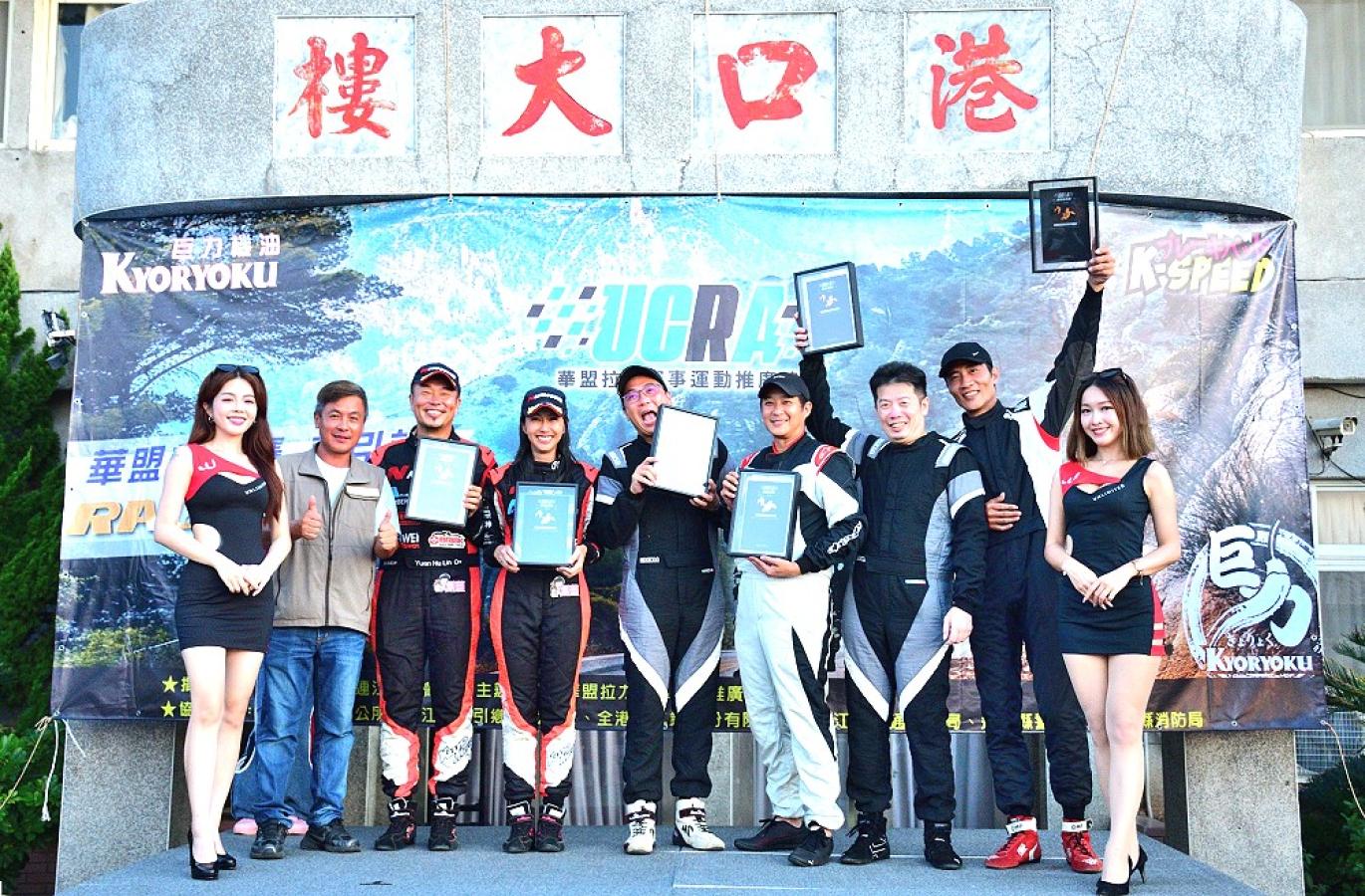拉力賽圓滿落幕,車手環車成圈共享榮耀,港區廣場頒獎典禮氣氛熱烈。(圖/文:陳其敏)
