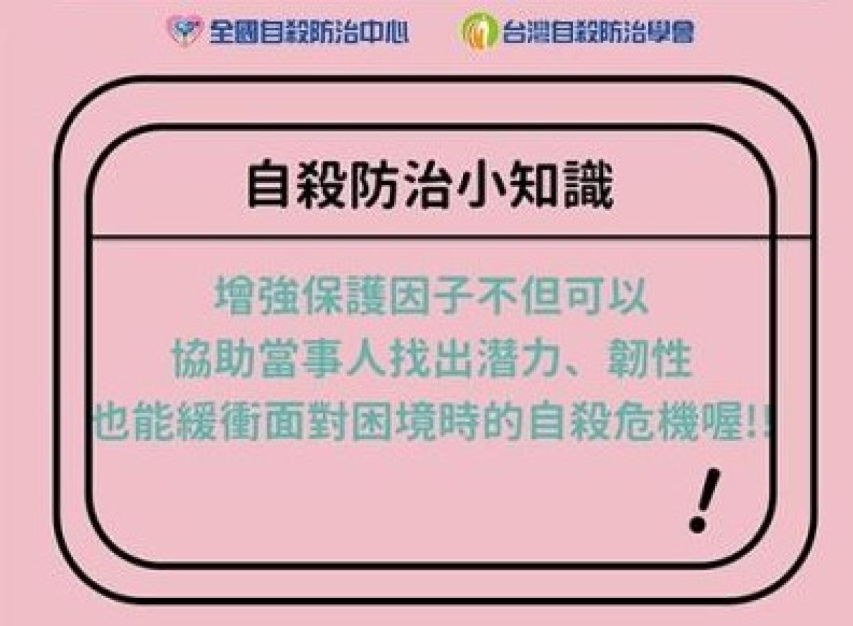 3、健康照護層面:增強保護因子有助於降低自殺風險,評估保護因子也可以協助當事人找出他的潛力、韌性,並緩衝他所面臨的自殺危機喔!