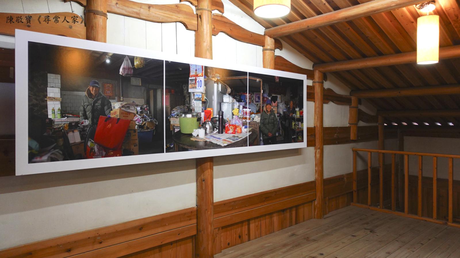 《尋常人家》/藝術家:陳敬寶, 本系列作品帶領觀者進入原本隱微於家戶門庭之內鮮少得見的在地室內空間,以擺拍攝影的形式,記錄當下此時幾位北竿島住民的居家環境肖像。透過大幅照片客觀精細的描繪,揭顯出框景中的人、物件與擺設在社會學及人類學層面的意涵。三屏橫向開展的攝影影像,模擬電影鏡頭裡的「橫搖」;在分隔卻緊鄰的空間中,主要被攝者經常出現兩次,既呈現其不同的面貌也暗示時間的推移。 展點:北竿坂里大宅、尚振大宅