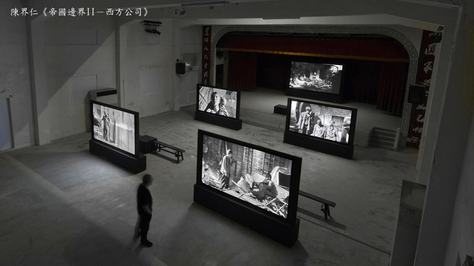 《帝國邊界II-西方公司》/藝術家:陳界仁 ,影片以父親忌日時,兒子藉由重新審視父親的遺物———無法見證歷史現場的空白相簿、真實卻又無從考據的反共救國軍軍人陣亡名單、在自我審查下所寫的半虛構自傳,以及父親肉體消亡後所遺留的老舊軍服———於焚燒冥紙、煙霧繚繞的家中,兒子穿上父親的軍服,在恍若與父親合為一體的想像中,開始一場重回具帝國寓意的「西方公司」的旅程。 展點:西莒中正堂