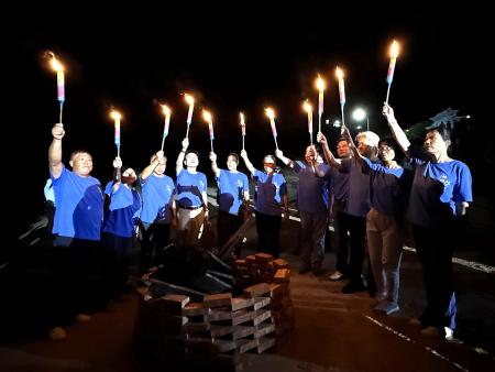 除穢儀式由縣長王忠銘、議長張永江等人持火把點燃磚塔,象徵除穢迎新;創意踩街熱鬧繽紛,展現節慶活力。(圖/文:王致潔)
