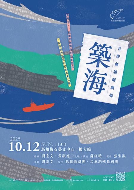 《築海》是由榮獲114年度連江縣傑出藝文團隊殊榮的馬祖戲劇團與馬悠蹈嶼舞蹈團,聯手推出的年度讀劇劇場演出,透過戲劇與舞蹈交織,演繹出島民與海洋共生的生命圖景。編劇為劉宏文及黃顯庭老師,改編及導演為蘇鈺晴,演出後將由編劇劉宏文老師進行座談。