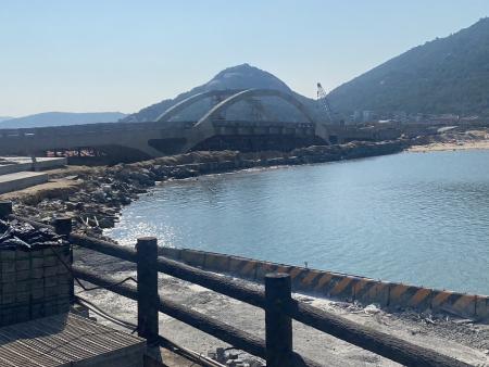 北竿塘后橋梁新建工程持續推進,預計10月下旬完成銜接並開放通行,未來將成為串聯機場與后澳村的重要交通要道。(圖/文:鄭禮頤)