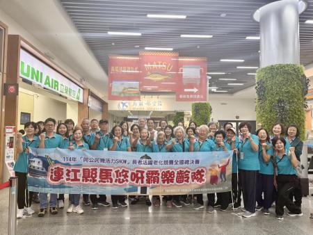 【記者王致潔報導】今日一早,連江縣29位長者啟程赴台,參加114年「阿公阿嬤活力SHOW」全國總決賽,縣長王忠銘與代理秘書長陳明傑特地前往送機,為長輩們加油打氣,祝福他們賽出自信、跳出快樂。