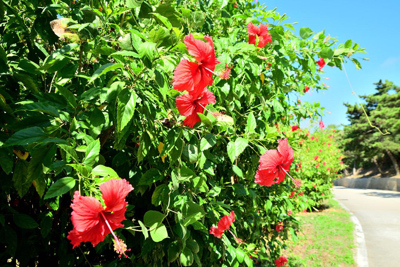 十月的東引,雖少了野花的繽紛,卻多了朱槿的鮮紅與熱烈。(圖/文:陳其敏)