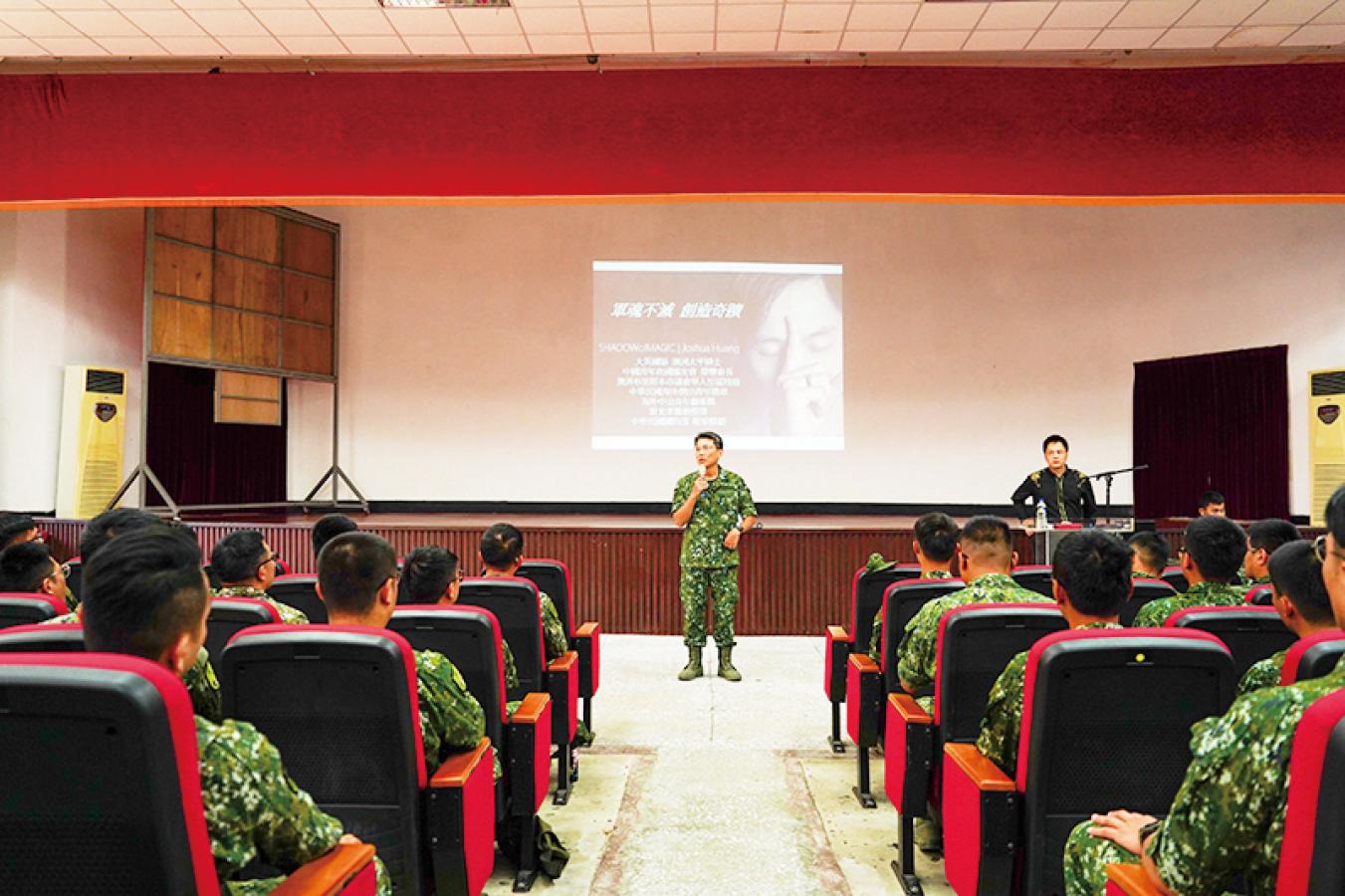 【特約記者林哲良/南竿報導】為建立官兵健康心理,培養積極樂觀的人生態度,馬防部日前辦理生命教育講座,邀請國際魔術師黃信凱老師以「軍魂不滅,創造奇蹟」為主題,輔以魔術分享其人生高峰跌落低谷進而罹患憂鬱症,此後藉由泰北行善、關懷泰北孤軍,並以心態轉念及堅定意志,戮力反轉人生的故事,給予官兵省思生命無限的可能。