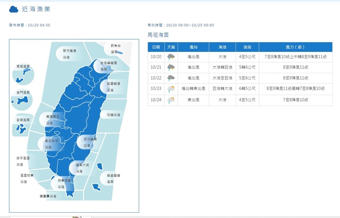 114年10月21日-10月22日琅岐航線,依中央氣象局預報顯示海象不佳,