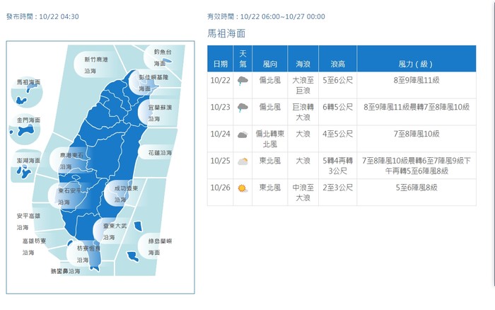 114年10月23日黃岐航線,依中央氣象局預報海象不佳,