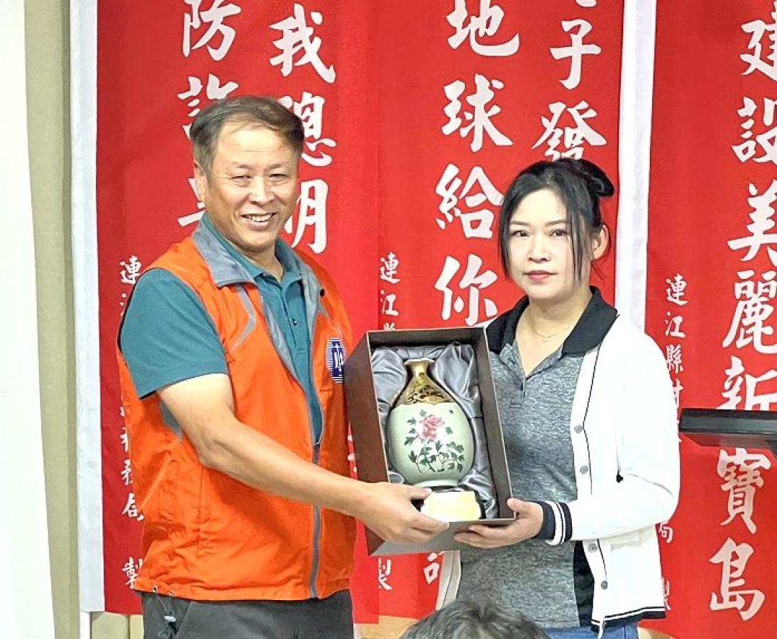 財政部北區國稅局馬祖服務處表揚績優營業人誼客閣咖啡烘焙館,主任曹祥安代表表揚。(圖/文:馮紹夫)