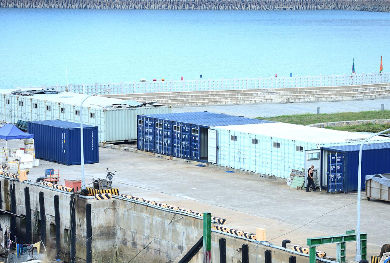 東引鄉自110年起分階段添購貨櫃改善港區設施,當年首次購置8個貨櫃,其中6個提供漁民存放漁具使用,另有1個改裝為可供如廁及盥洗的公共空間,1個作為岸巡駐點崗哨使用。112年鄉公所再增購5個貨櫃,今(114)年再添購7個,總數量已達20個,原有漁民自備之老舊貨櫃也全數汰換更新。