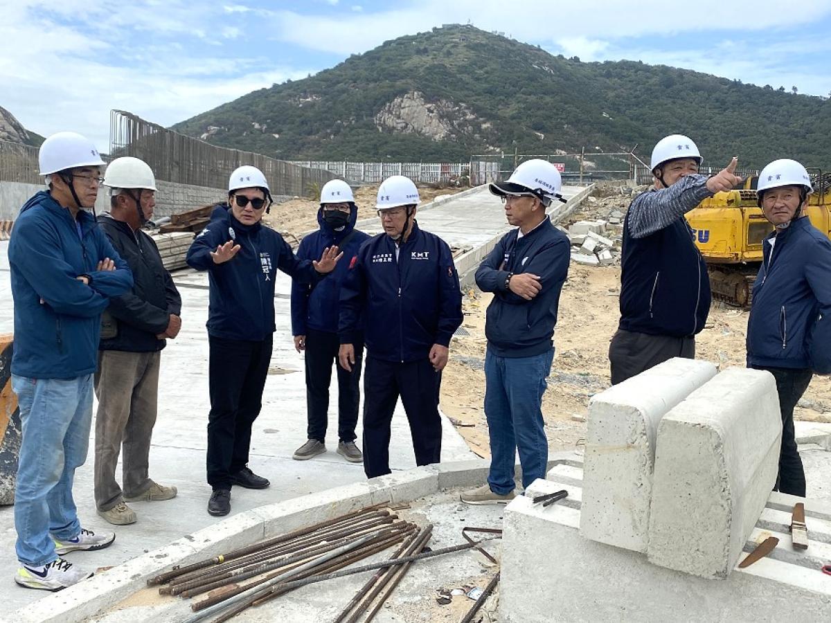 【記者鄭禮頤報導】為確保公共工程品質與施工安全,昨(24)日副縣長陳冠人前往北竿塘后橋工程現場實地勘查,了解施工進度與品質狀況,並聽取承辦單位及施工團隊進度報告,縣府與議員要求在議會開議前通車。