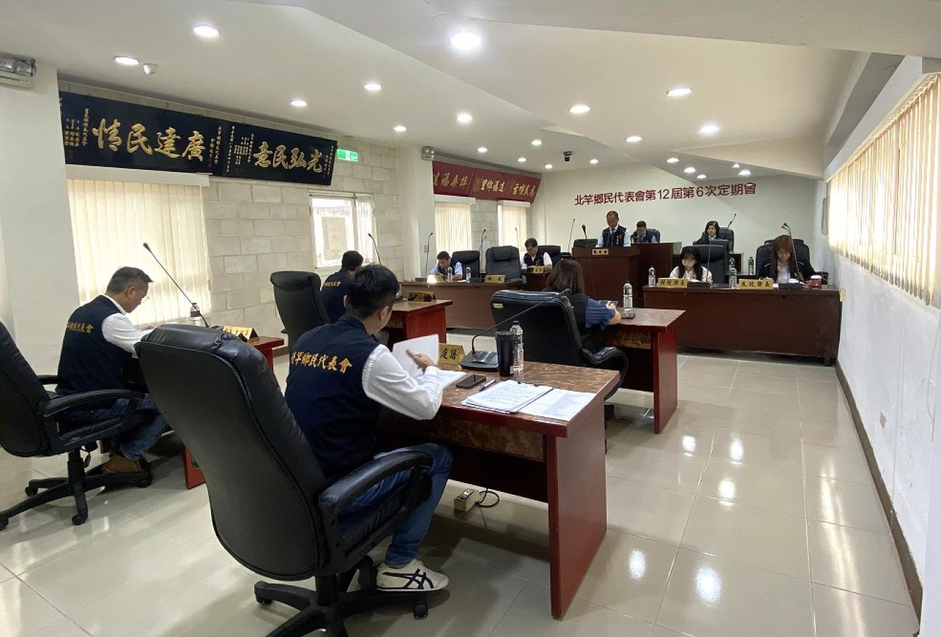 北竿鄉民代表會第12屆第6次定期大會進行議程,林加友主席主持會議,公所團隊列席報告施政報告。(圖/文:鄭禮頤)