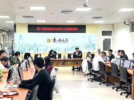 第10屆馬祖馬拉松第3次籌備會議昨(28)日下午3時於縣府3樓會議室舉行,由副縣長陳冠人主持,馬防部、馬管處、縣府各局處以及相關單位皆由主管或派代表與會。陳冠人感謝各單位的協助和大家的努力,尤其志工安排、賽道安全、醫療與交通規劃尤為重要。陳冠人強調,團結合作是成功的關鍵,祝願賽事順利、精彩,並期待看到團隊取得卓越的成果。