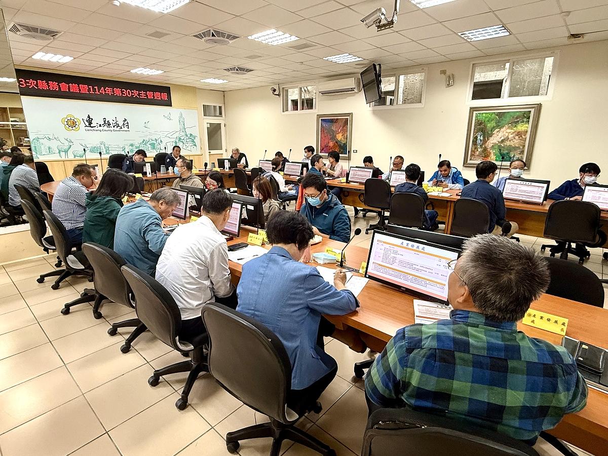 連江縣政府召開第253次縣務會議暨114年第30次主管週報。(圖/文:王致潔)