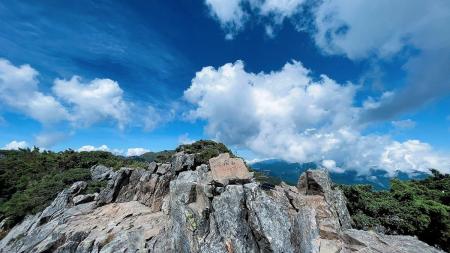 雖快要正午之時,但風輕雲白、山清氣爽,鼓舞了我大步向前,很快的我踏上哈哈山南峰與哈哈山。風在衣角舞動,彷彿山在與我對話。