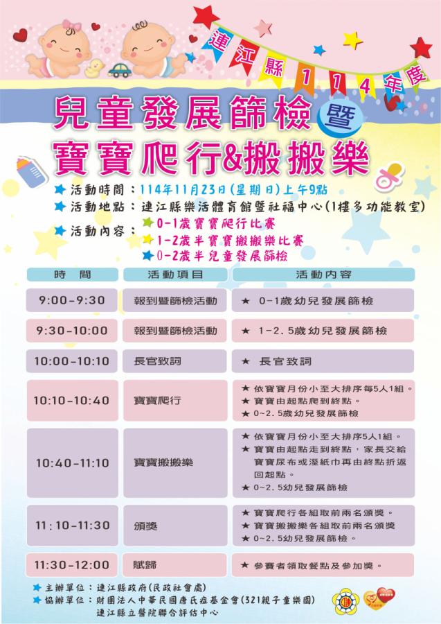 協辦單位:連江縣立醫院聯合評估中心、財團法人中華民國唐氏症基金會(321親子童樂園)