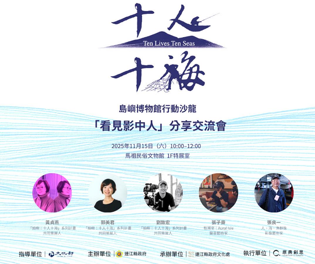 【記者王致潔報導】連江縣政府文化處將於11月15日(六)10:00-12:00舉辦十人十海×島嶼博物館行動沙龍:「看見影中人」分享交流會,地點馬祖民俗文物館1樓特展室。沙龍現場,十人十海策展人黃貞燕、郭美君、劉致宏,與藝術家張良一、張子霽,及協作者將齊聚一堂,分享參與其中的心得與觀察,同時由連江縣政府致贈協作者感謝狀,歡迎各界共襄盛舉。(報名連結:https://forms.gle/Deg515ngAn-Ft91av9)
