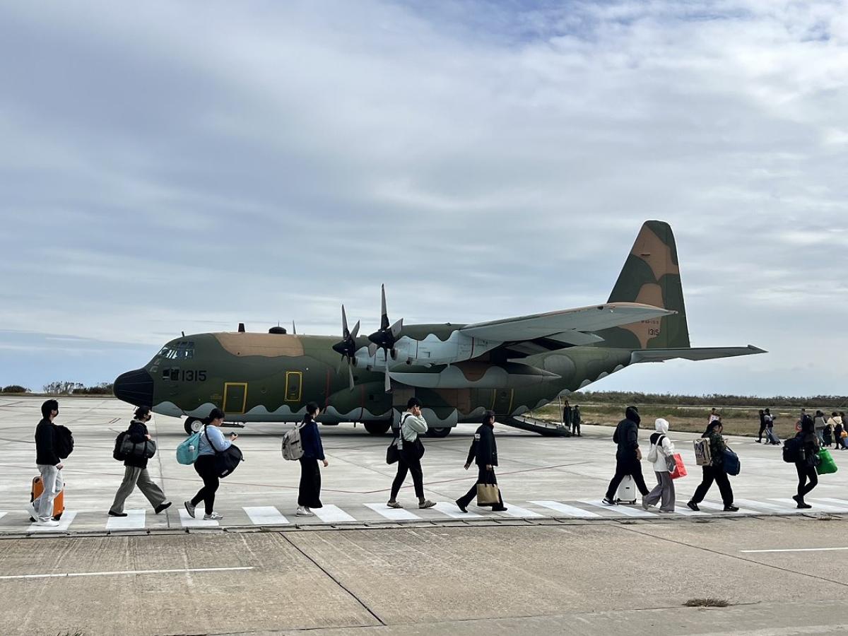 受天候影響,馬祖11日、12日連續兩天班機全部取消,昨天為加速疏運旅客,縣府、民航局提出兩架次軍機疏運申請。國防部核定後,第一架12時10分松山起飛,第二架12時40分松山起飛,兩班軍機均滿載70人往台灣。