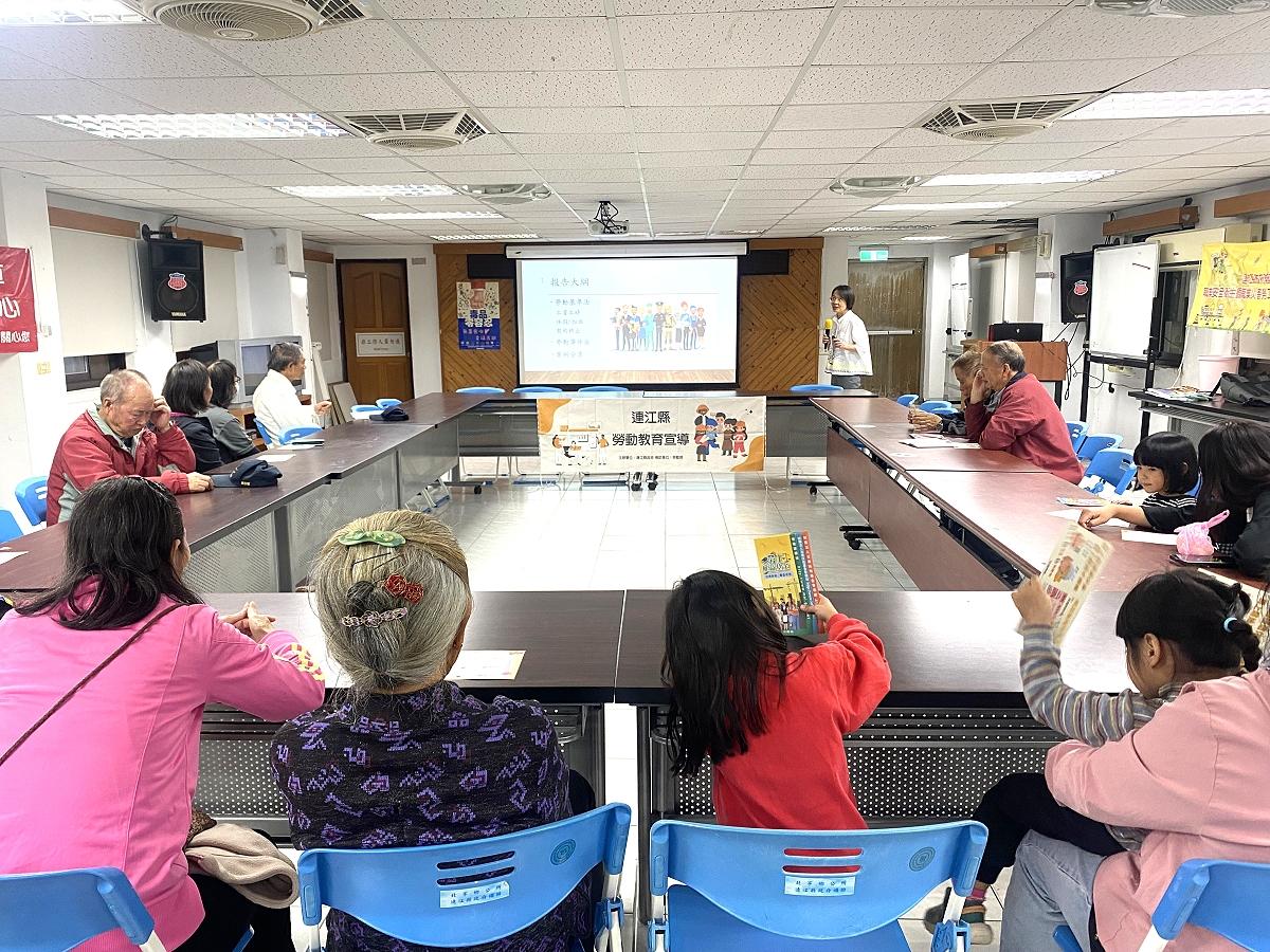 【記者鄭禮頤報導】連江縣政府民政社會處13日晚間6時於北竿鄉公所民政課2樓舉辦「勞動教育宣導計畫」,吸引多位鄉親到場參與。活動旨在提升民眾對勞動法令的認識,強化勞工與雇主之間的溝通與理解,共同打造安全、友善且具永續性的工作環境。